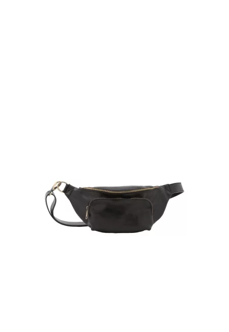 Кожена чанта за кръста с регулируема препаска - Черен
