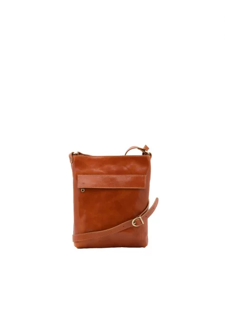 Кожена чанта през рамо - Коняк кафяв