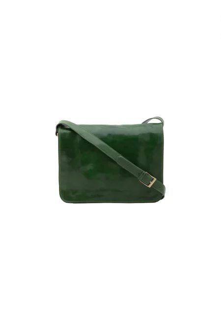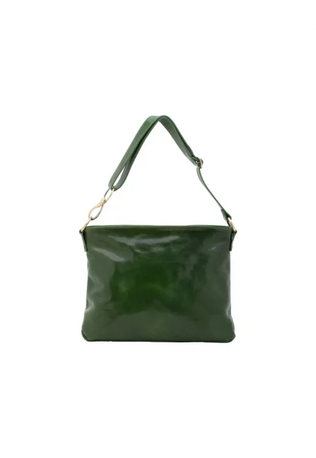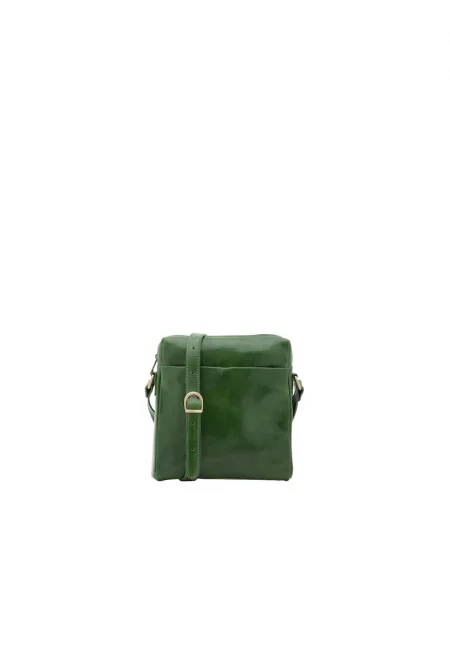 Кожена чанта през рамо с регулируема презрамка - Зелен
