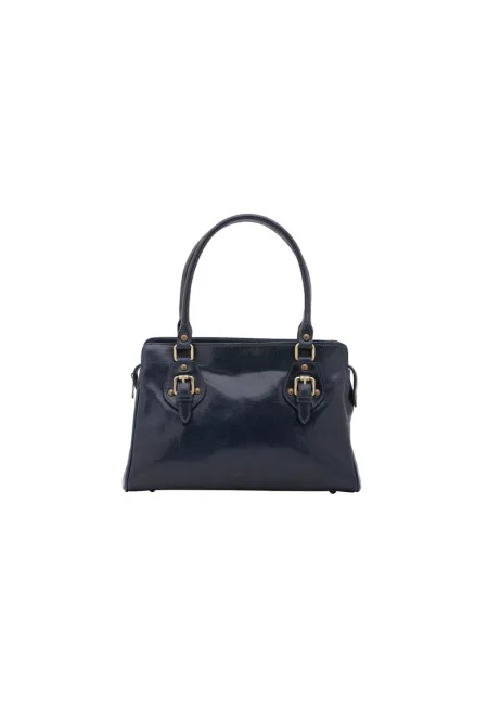 Кожена ръчна чанта с 2 отделения - Син