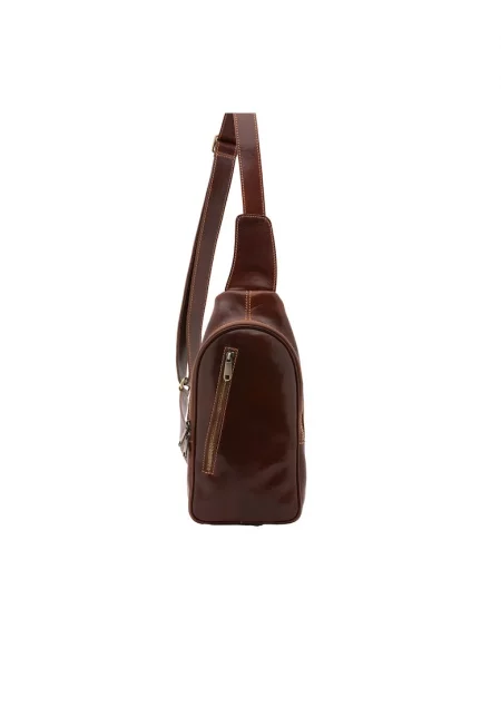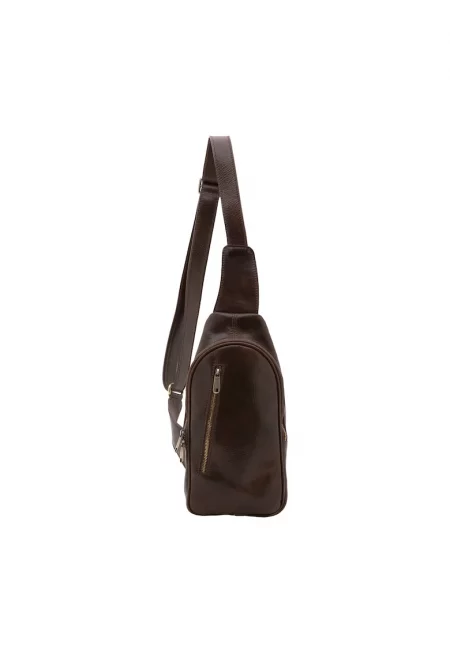 Кожена чанта с преден джоб с цип - Тъмнокафяв