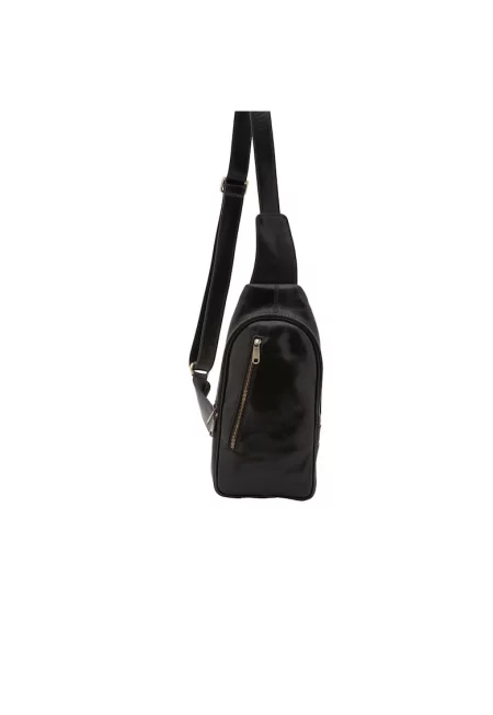 Кожена чанта с преден джоб с цип - Черен