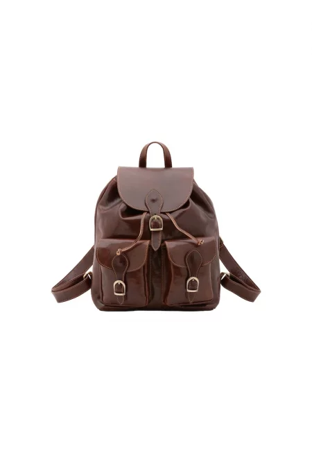 Кожена раница с джобове с капаче - Кафяв