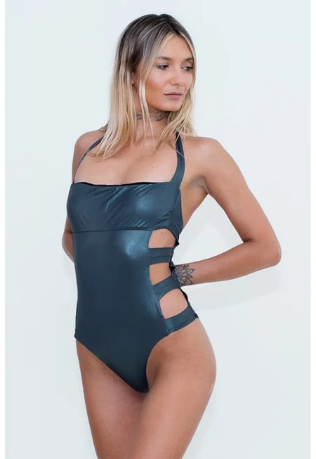 Цял бански със странични отвори - Папратово зелено