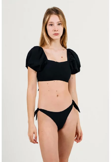 Бански от две части с бухнали ръкави - Черен