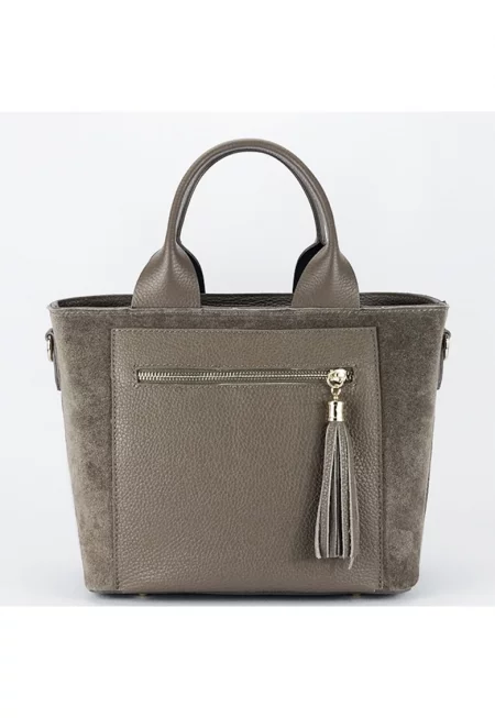 Чанта от естествена кожа 1014 128 - Сиво-кафяв