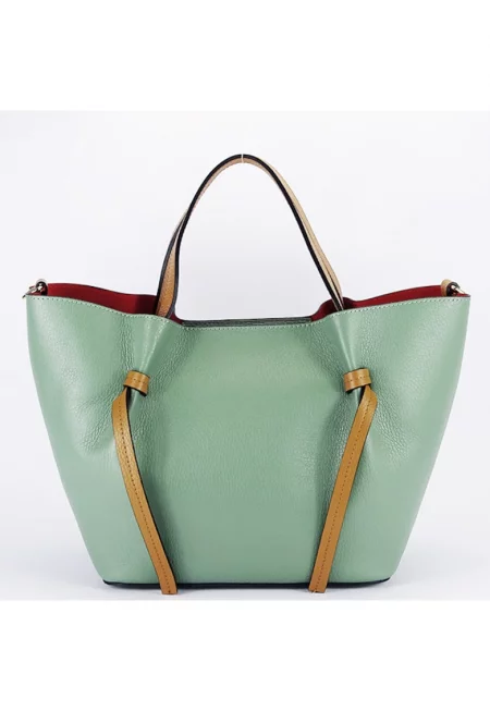 Чанта - естествена кожа с подвижна чантичка - Ментово зелено
