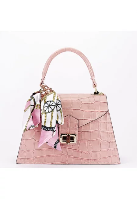 Розова чанта от естествена кожа с шал 8953 123 16991 - Розово
