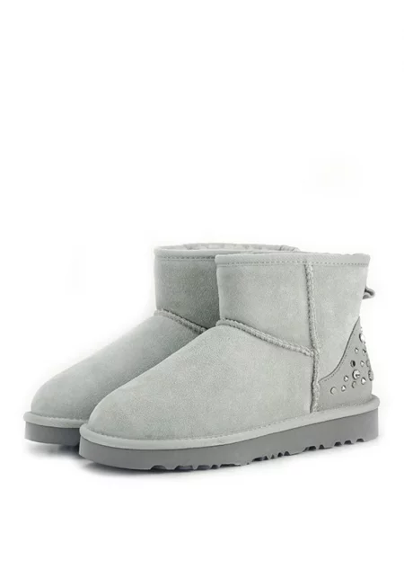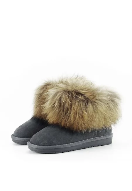 Сиви ботуши от естествена кожа с естествен косъм 8013 11 15668