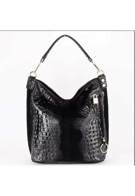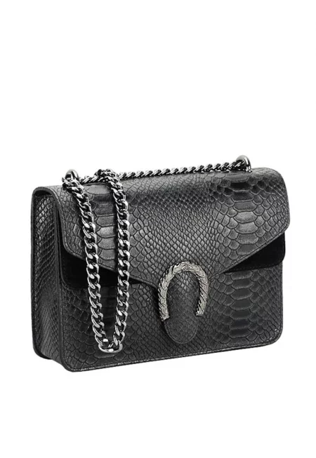 Дамска чанта от естествена кожа - Черен