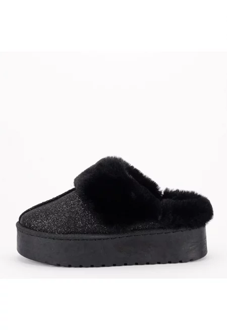 Черни подплатени чехли с брокат HY88-59 114 16007