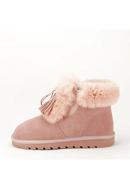 Ботуши от естествена кожа с естествен косъм 8013 111 15678 - Бежови