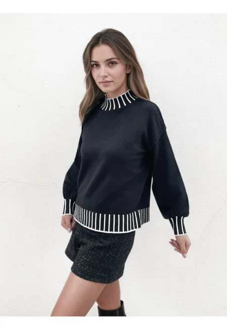 Черен пуловер с леко бухнали ръкави Z-101 M9 18195