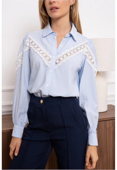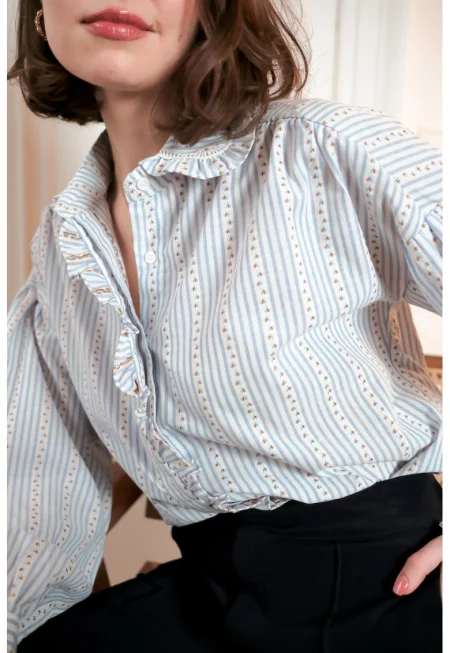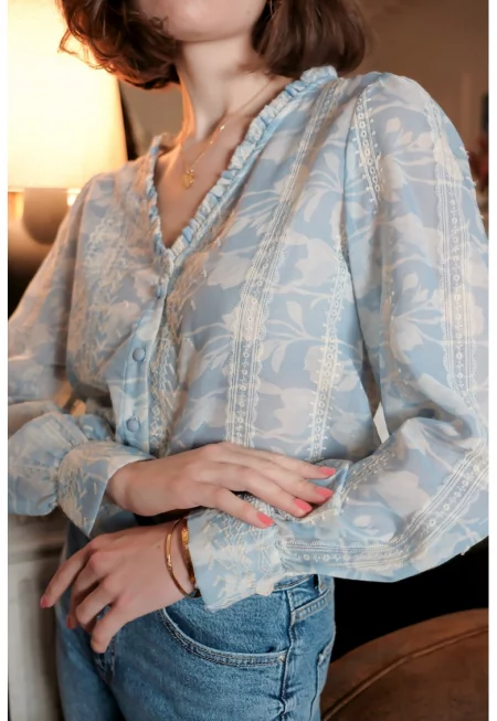 Синя риза с флорален принт и бродирани детайли - 4819T M9 17134