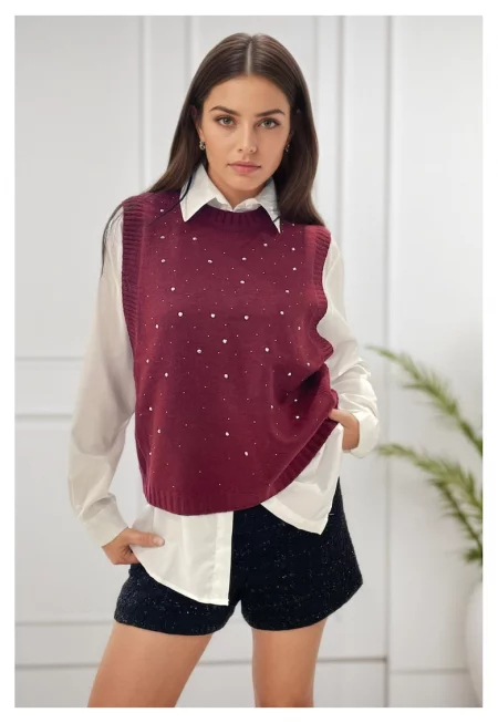 Пуловер бордо без ръкави със страз A-9015 M9 18189