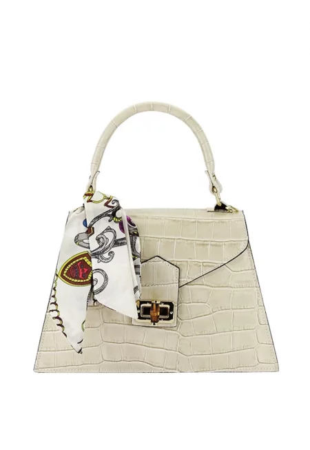 Бежова чанта от естествена кожа с шал 8953 123 16990 - Бежов