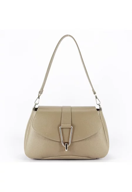 Чанта от естествена кожа таупе 1590 123 18081 - Сиво-кафяв