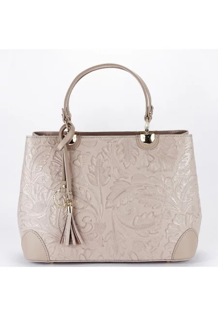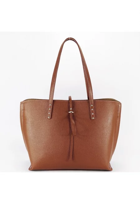 Голяма чанта от естествена кожа 8922 - Тъмнобежово