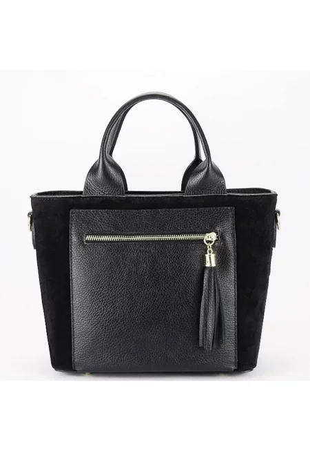 Черна чанта от естествена кожа 8911 128 18122 - Черен