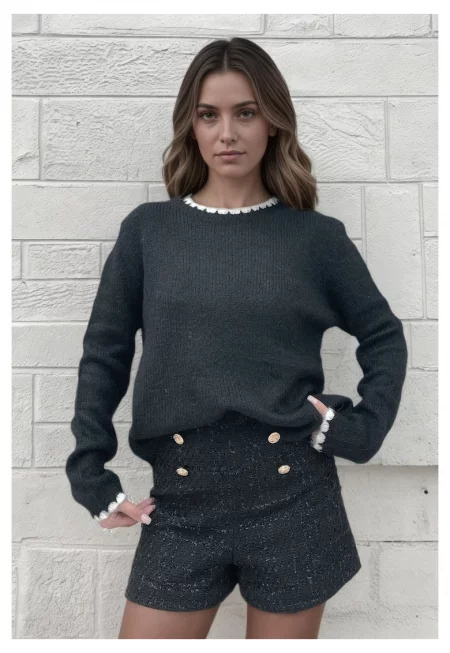 Черен плетен пуловер A-9020 M9 18196
