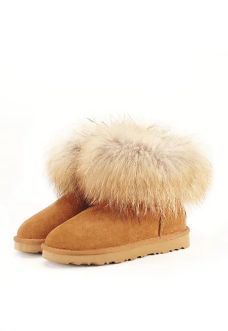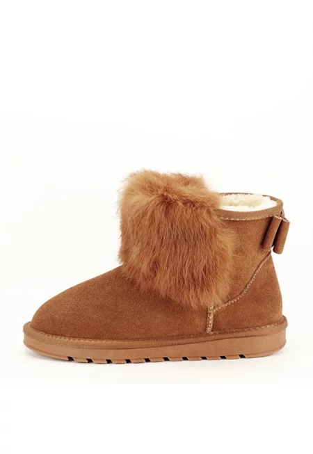 Бежови боти от естествена кожа с пухче Carina 19 9599