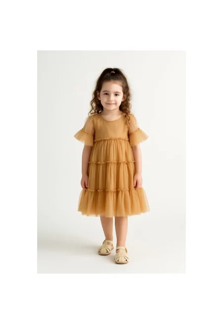 Рокля от тюл с къси ръкави - Кафяв