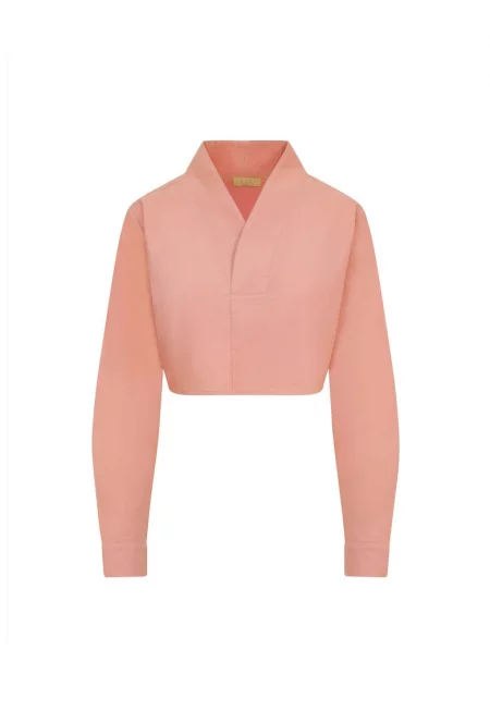 Къса блуза с дълги ръкави и шпиц - Розово