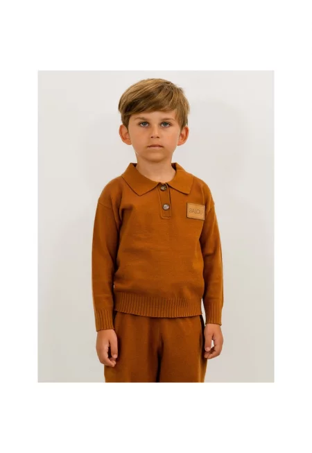 Пуловер с яка и лого - Кафяв