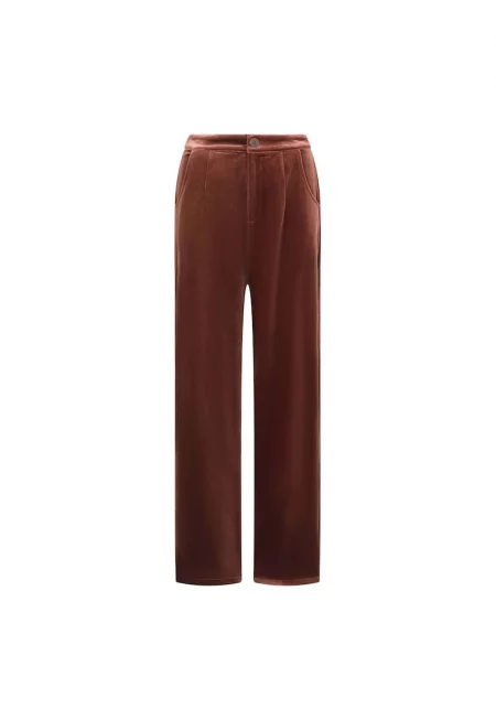 Кадифен панталон с висока талия - Кафяв