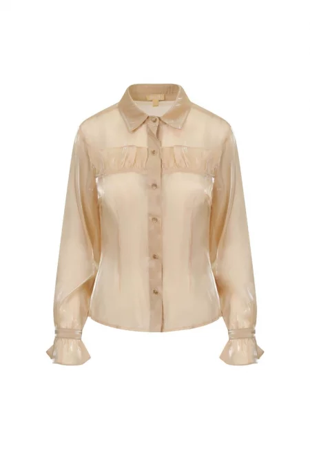 Полупрозрачна риза от органза с набирания - Бежов