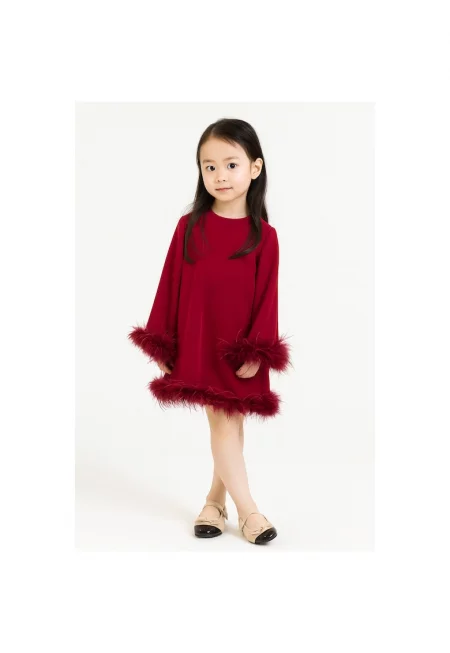 Рокля с дълги ръкави и щраусови пера - Червен