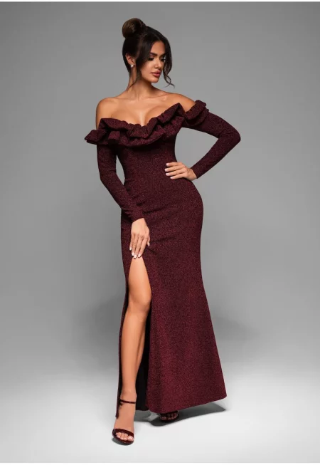 Макси вечерна рокля LA-OM-DLR038 - Тъмночервен