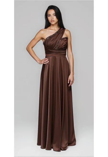 Макси вечерна рокля LACRICA LA-OM-DLR005 - Светлокафяв