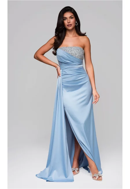 Вечерна рокля Макси LA-OM-DLR224 - Светлосиньо