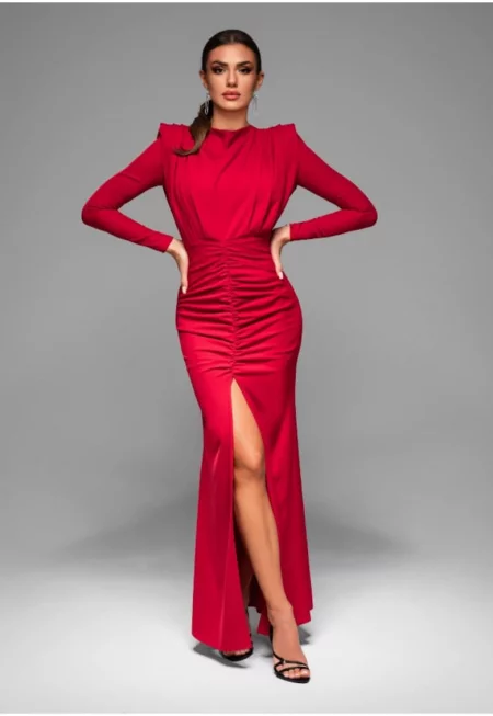 Миди вечерна рокля LACRICA LA-OM-DLR030 - Червена