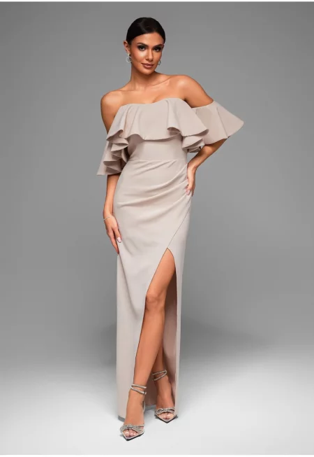 Миди вечерна рокля LA-OM-DLR050 - Бежова