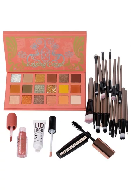 Комплект грим - 18 цвята сенки - Четки - Червило - Праймер - Спирала