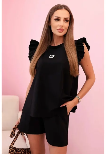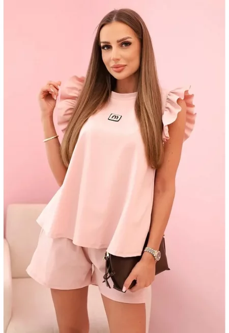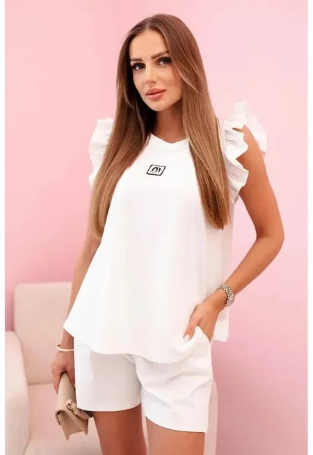 Комплект от блуза с къс ръкав и волани и къси панталони -