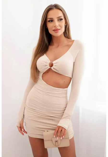 Къса рокля с изрязана талия и декоративен пръстен - Един размер