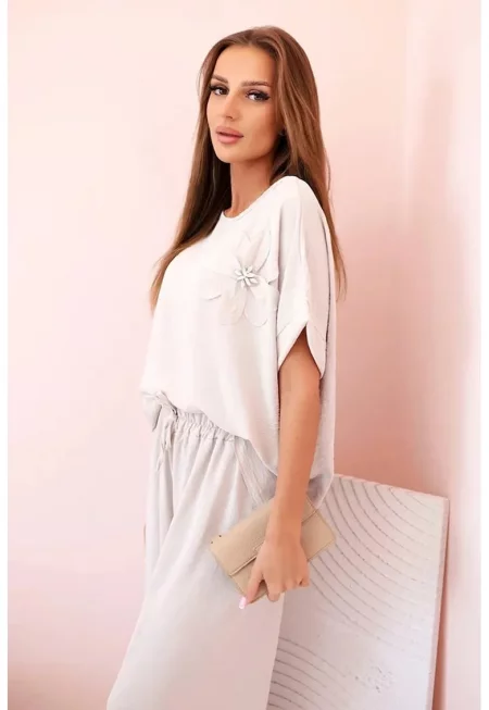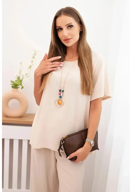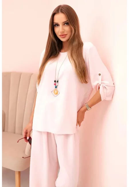 Комплект свободна блуза с колие и панталони - Един размер