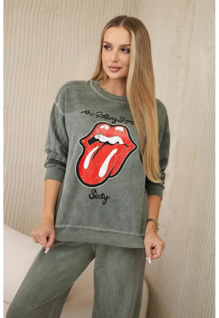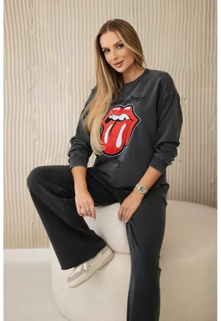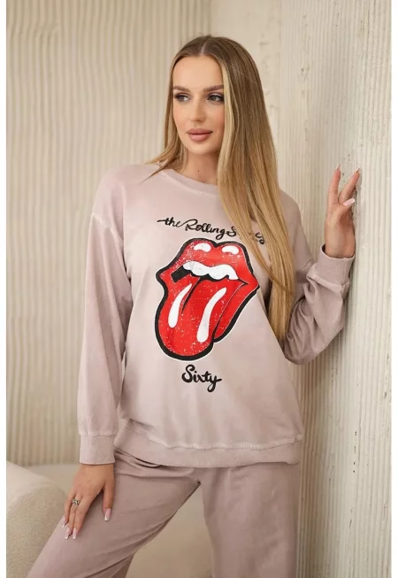 Комплект суичър с щампа и панталон - Един размер