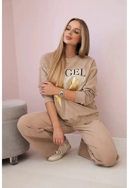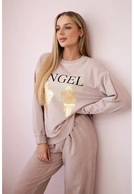 Комплект суичър с текстов принт и панталон - Един размер