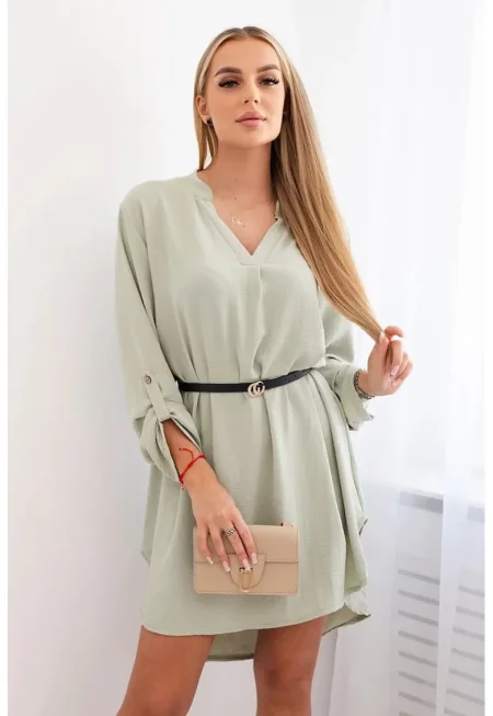 Рокля с V-образно деколте и колан -