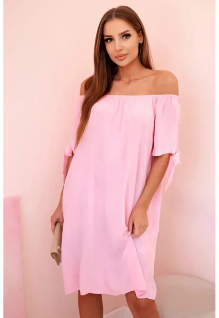 Рокля от вискоза с деколте на раменете и панделки - Един размер