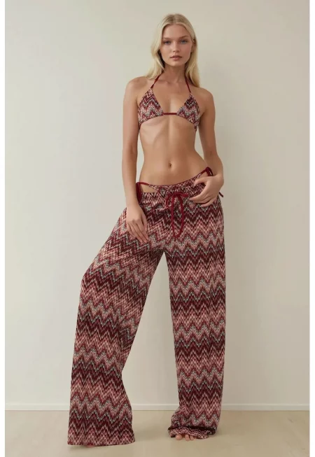 Комплект дълъг пуловер и широки панталони - трикотаж - бежов