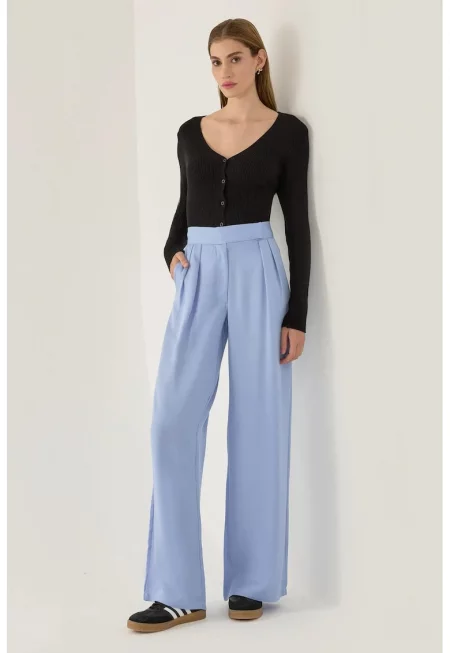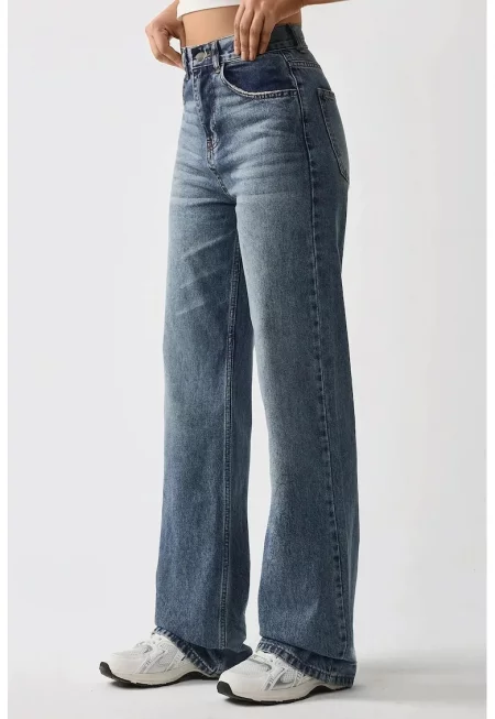 Дамски дънки - широки от деним - светлосини - баги кройка