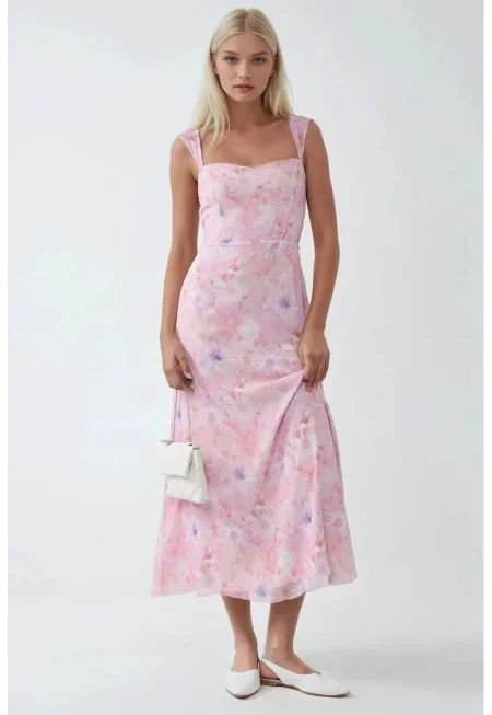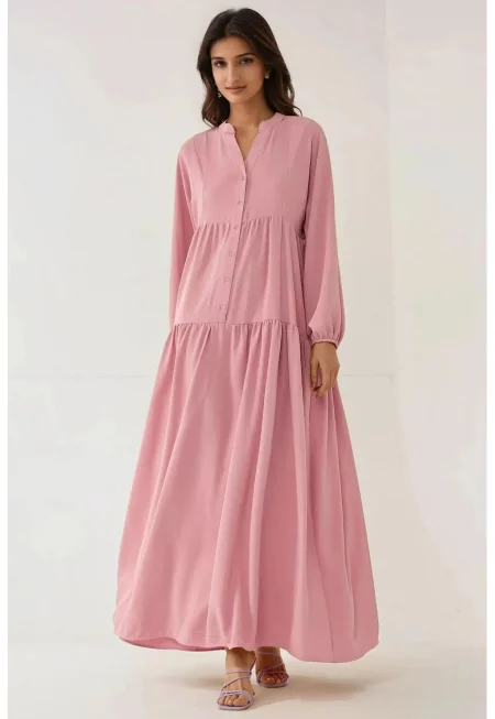 Макси рокля V-образно деколте - копчета - розова - текстил