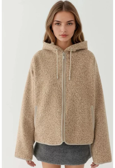 Яке с качулка - текстурирано - удобно - бежово - трико