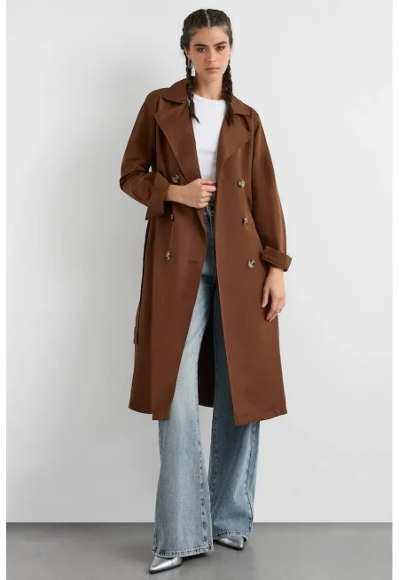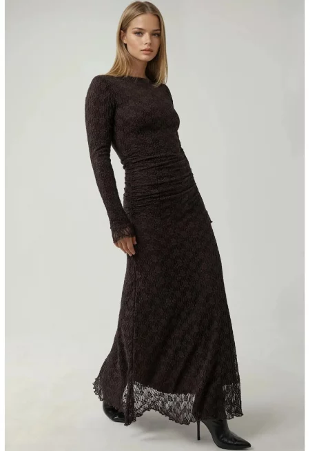 Макси рокля - Дантела - Обло деколте - Кафяво - Жарсе