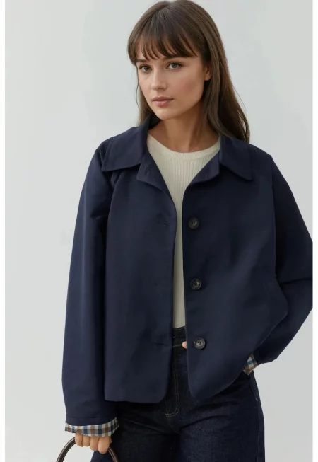 Дамско яке - закопчаване с копчета - тъмносиньо - полиестер